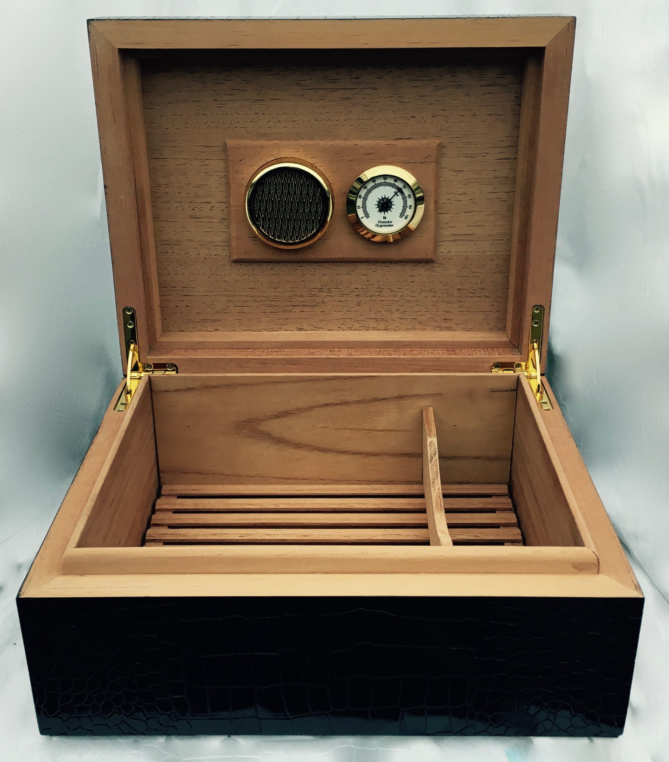 Humidor met krokodil afwerking. Inclusief Airflow bodem, vochtverdeler en hygrometer.